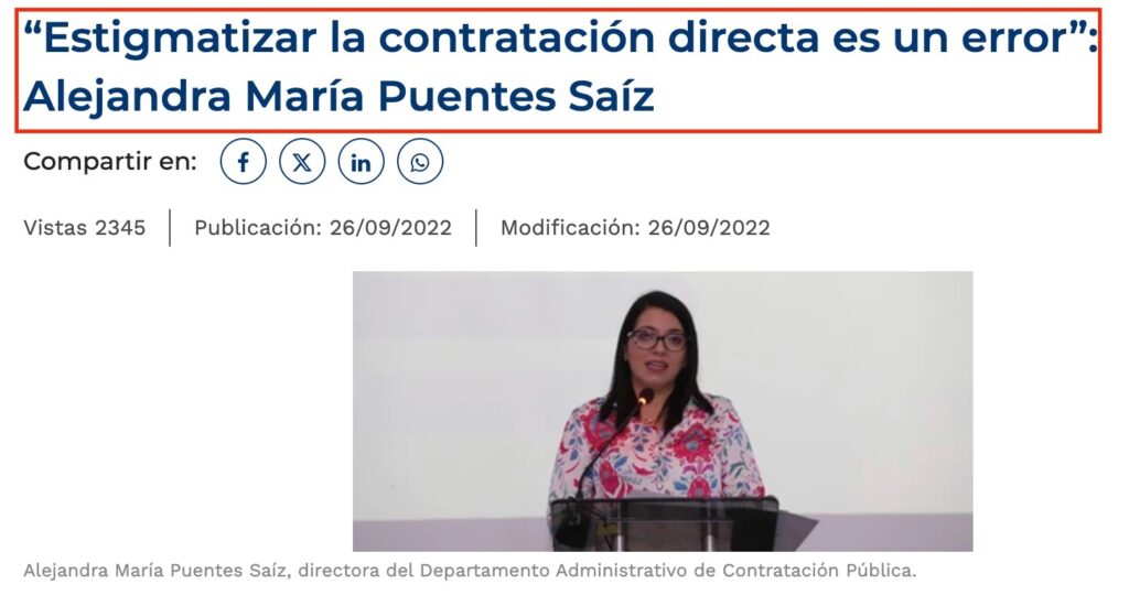 Diago también recordó que, pese a la advertencia de la Procuraduría, Alejandra Puentes defendió públicamente la contratación directa y aseguró que no debía “estigmatizar” esta práctica, lo que —según la cabildante— genera dudas sobre su compromiso con la transparencia en la gestión de los recursos públicos.